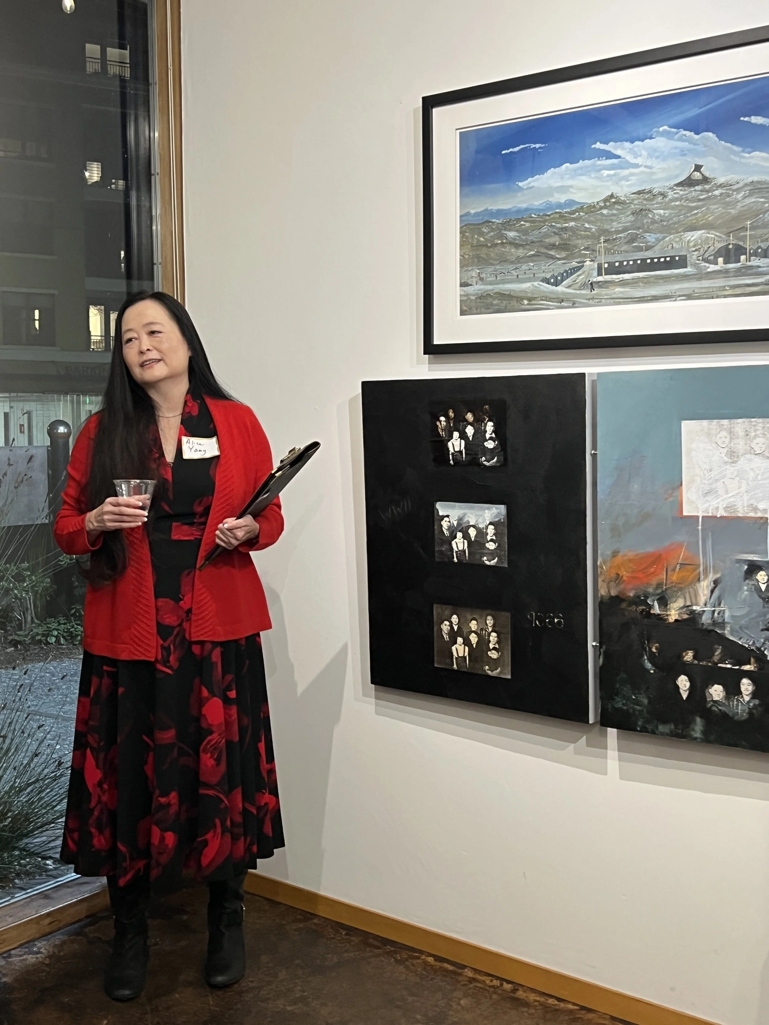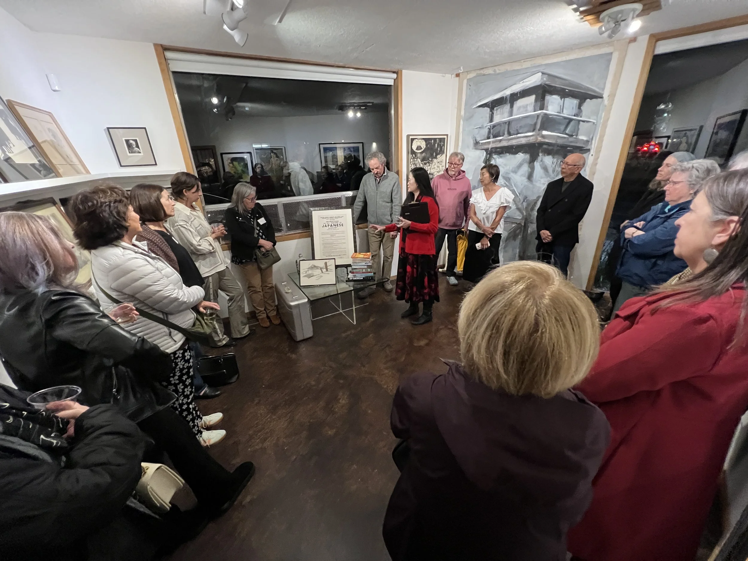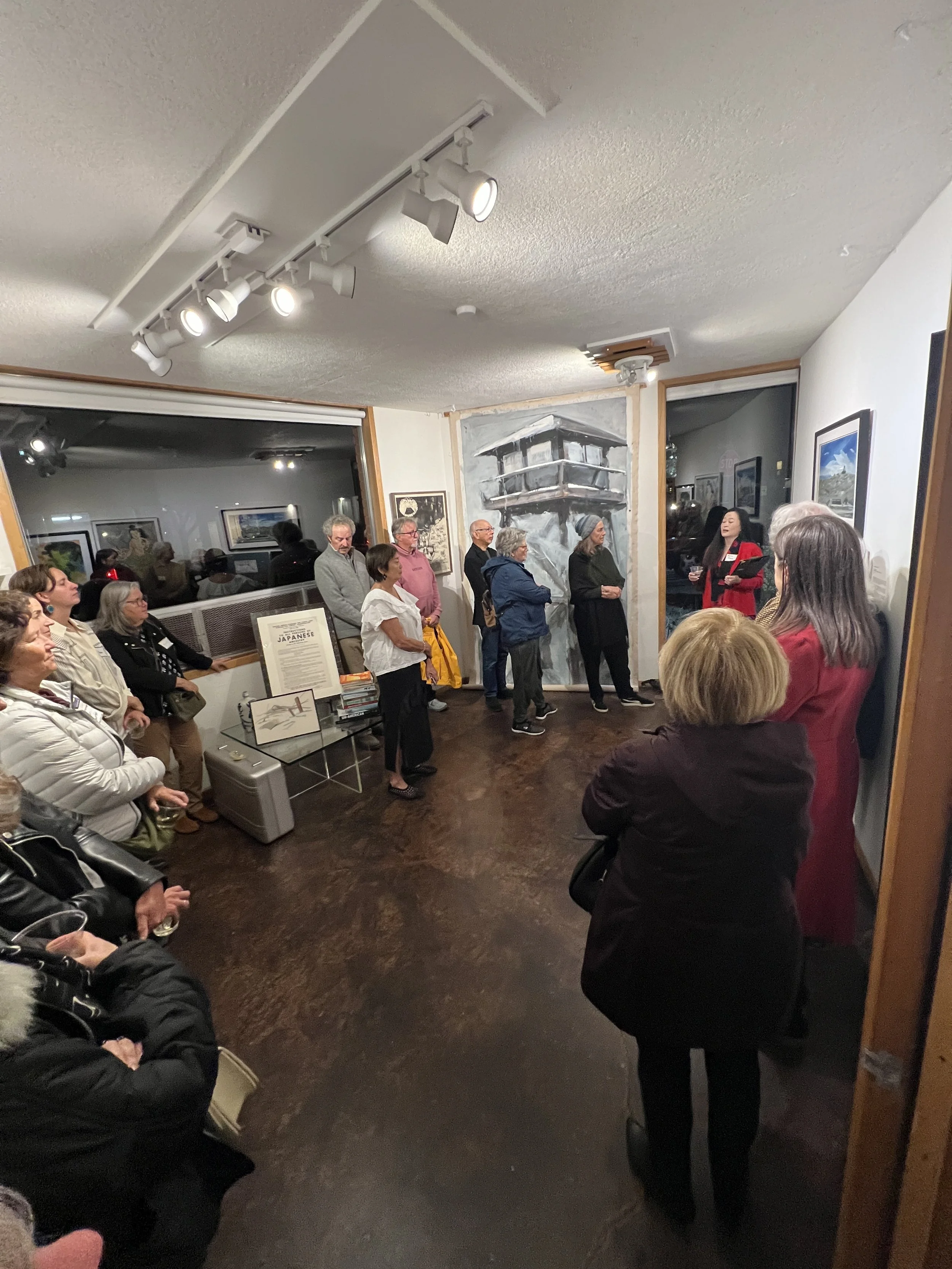She asked us to look around the room and consider the ages of the artists when they were interned. Howard Ikemoto — just 3 years old., Ben Sakoguchi — 5 years old., Claire Haratani — a teenager.